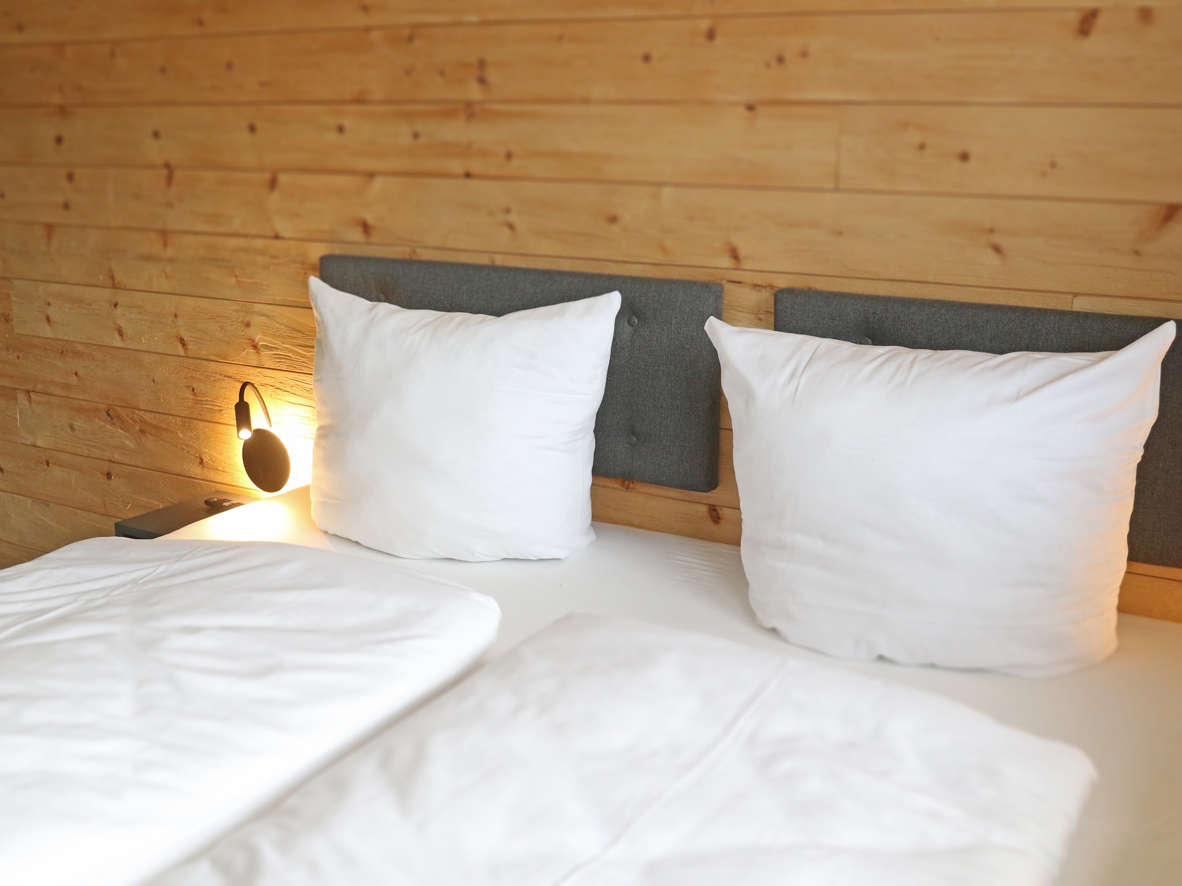 Im Schlafzimmer schlaft Ihr in tollen Boxspringbetten, Kingsize 1,80 x 2,00 m, mit extra Zirbenholz an der Rückwand. Unser Schrankbett 1,00 x 2,00 m mit vollwertiger Matratze erwartet Euch im Wohnzimmer.